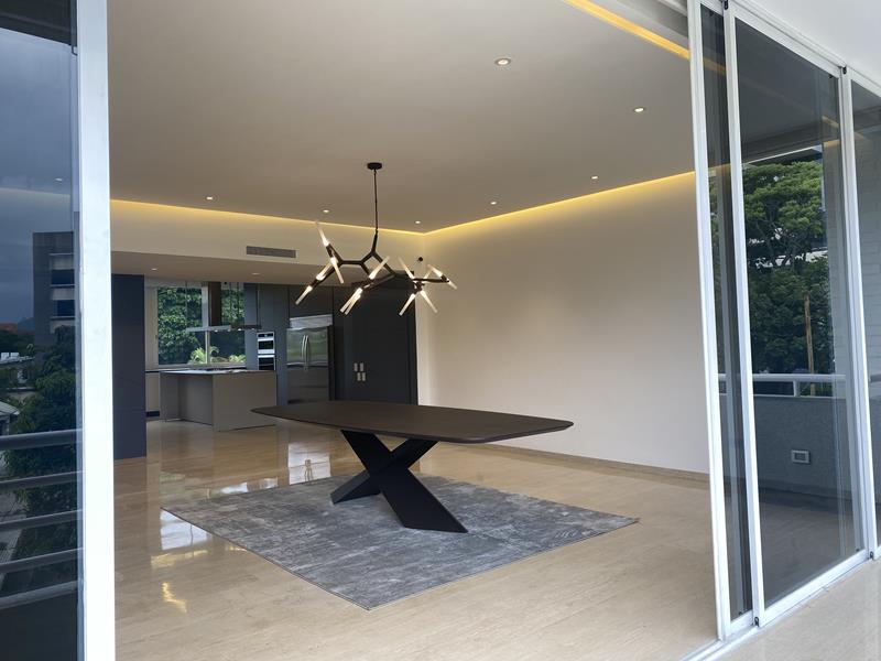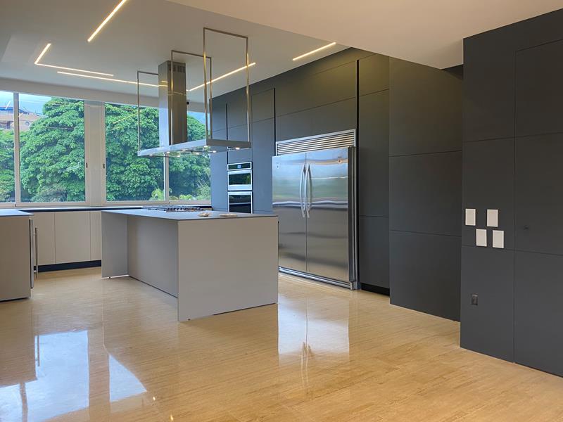 Adecuación, remodelación total y acondicionamiento de espacios en acabados de primera, incluye detalles e iluminaria, sanitarias, cocina, amoblado; para apartamento pent-house ubicado en el estado Miranda, Caracas, Venezuela.