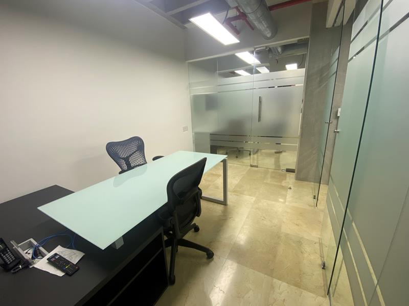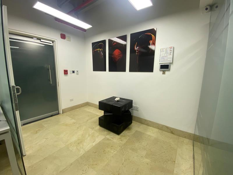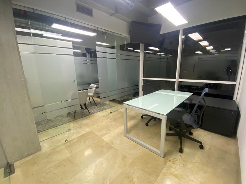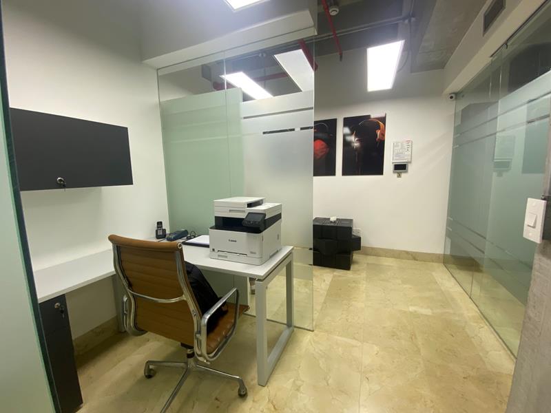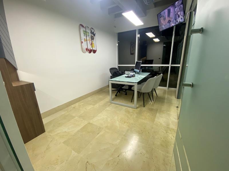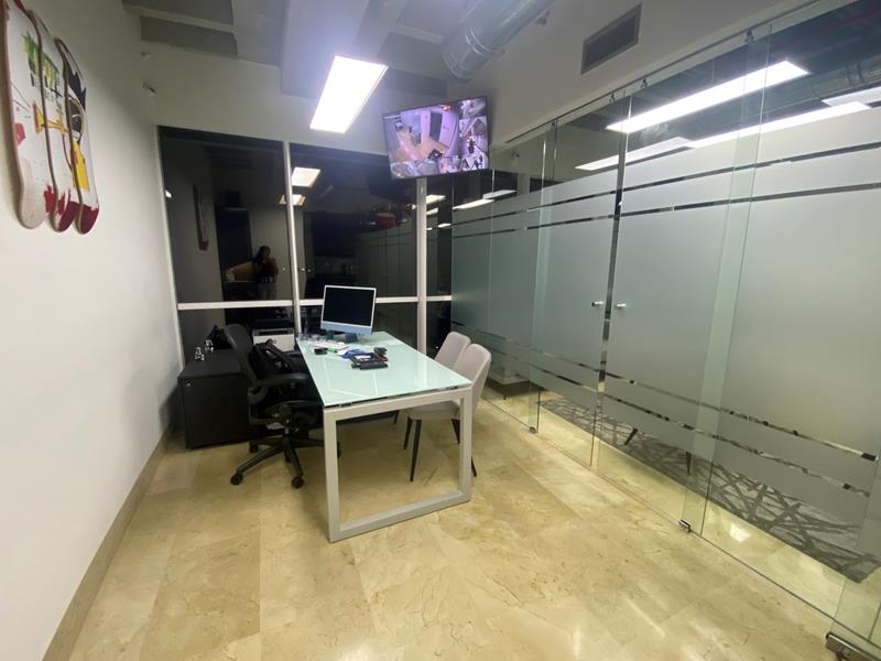 Reestructuración completa de oficina, instalación de puertas automatizadas, piso de mármol y cámaras de seguridad, aplicación de iluminación y pintura, ubicada en Las Mercedes, estado Miranda.